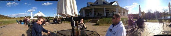 Afton has a great selection of wines and offers a classic and reserve tasting. I splurged for the reserve tasting (seriously it’s only $3 more, so just do it), and was really impressed with their reds, particularly their Festa di Bacco, a Tuscan style blend of Sangiovese, Cabernet Sauvignon, and Merlot, and their Cabernet Franc, which is a grape that grows particularly well in Virginia – you’ll find a bottle of this at almost every winery in the state. Jeremy, Sara and Bryan (my cousin and her husband) did the classic tasting and all agreed the Riesling, which was semi-dry and not too sweet (less than 2% residual sugar – a number very important to those of us who detest wines that taste like grape flavored corn syrup) was a winner. So we shared a glass of the Riesling on their beautiful patio. Did I mention the weather was perfect? It was perfect.