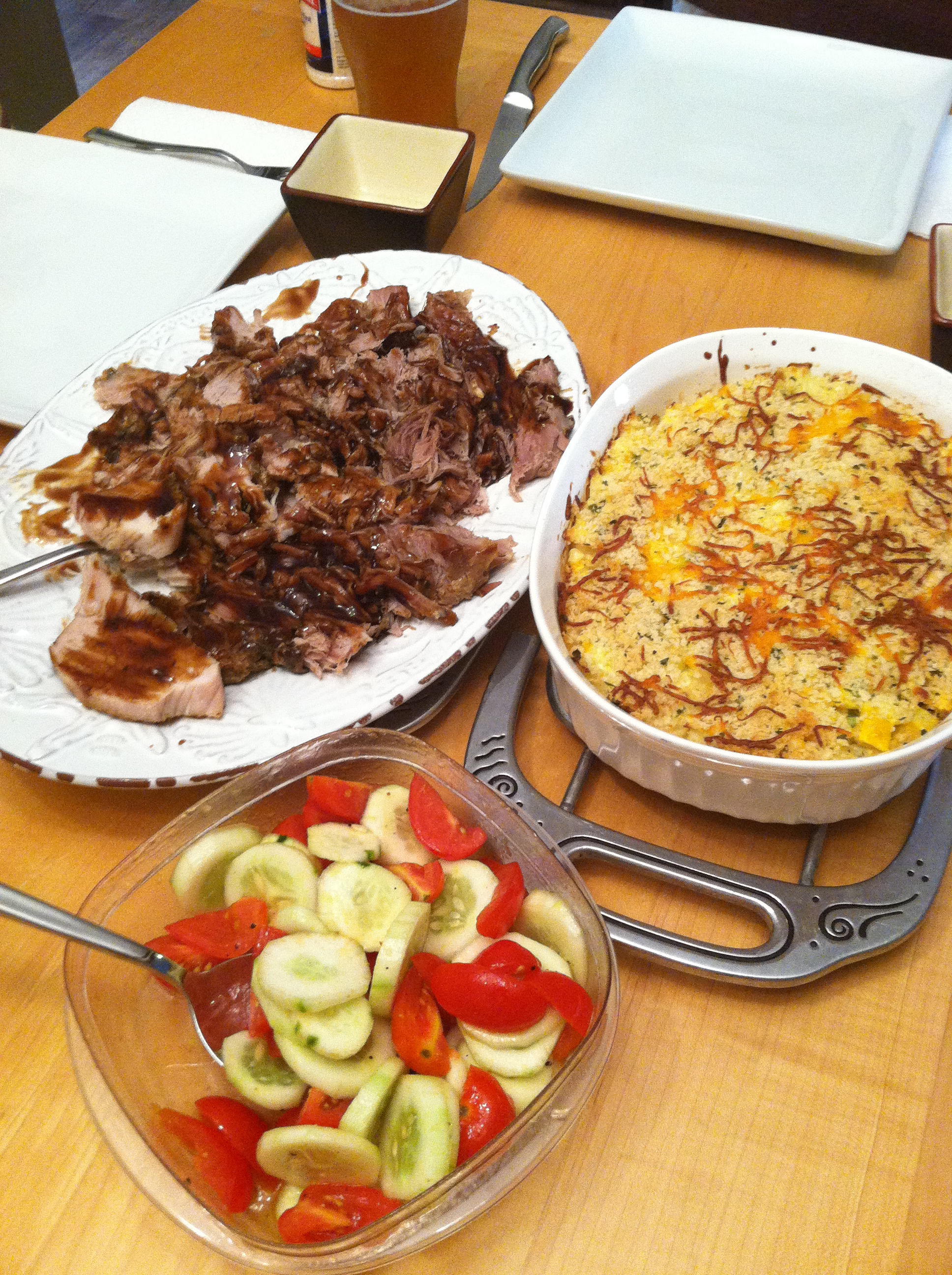 I served it with a squash and corn casserole and a light tomato and cucumber salad. You’ll notice the portions here look similar to the diagram at the beginning of the post: